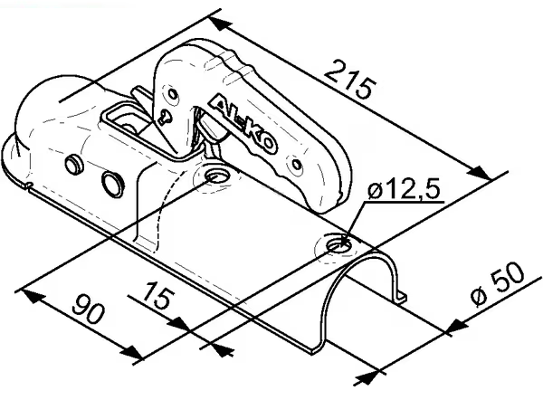 Cuplaj cu bila remorcare AK7/F PLUS, sarcina max. 750 kg, pentru ax cilindric 50 mm;