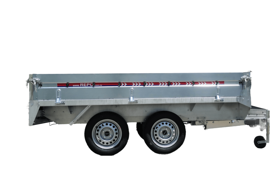 Prinderea pe sasiu se face prin suporti zincati speciali, remorca are si basculare manuala.